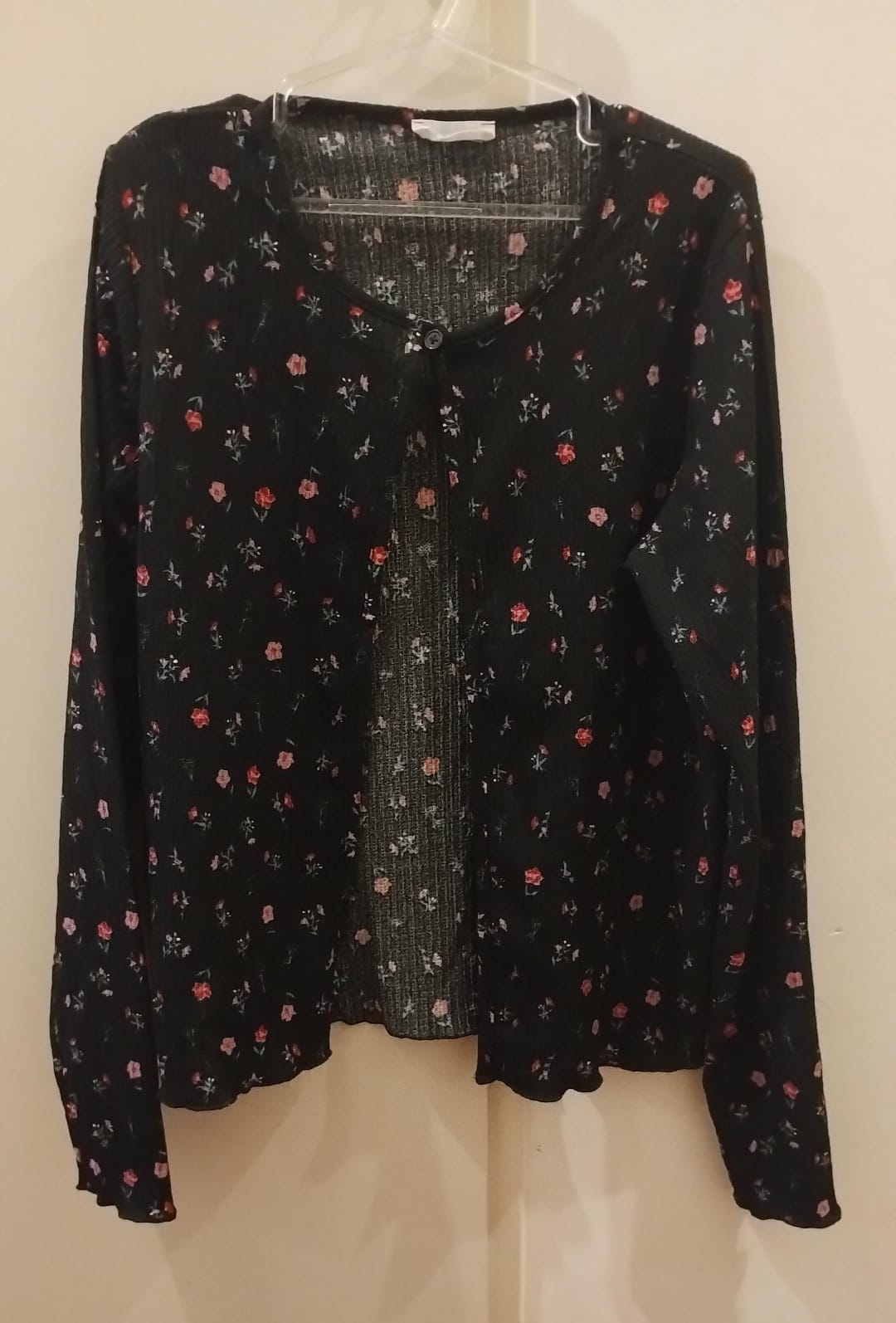 Descripción: Saquito de crepe con un botón para abrochar. Es de niña pero equivale a XS-S de mujer